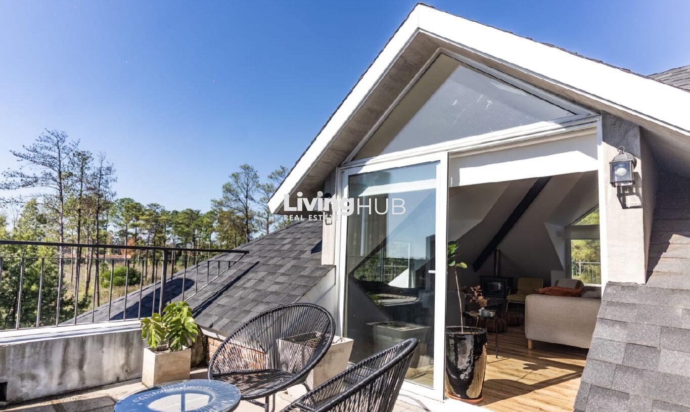 El dormitorio principal es en suite y tiene acceso a balcón, mientras que el segundo dormitorio también es en suite con salida a terraza independiente. La propiedad ofrece tres terrazas amplias, ideales para disfrutar del entorno natural.