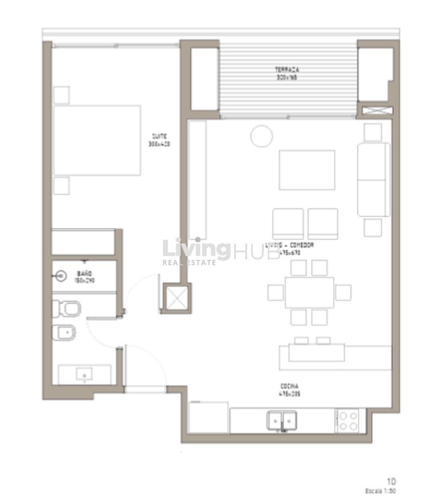 1 dormitorio y 1 baño completo.