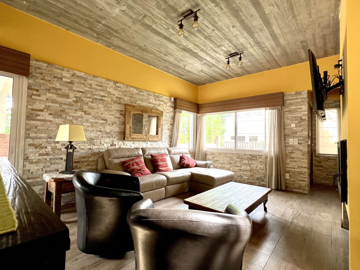 - Acogedor y luminoso living con amplios ventanales que permiten la entrada de luz natural durante todo el día, con estufa de alto rendimiento.