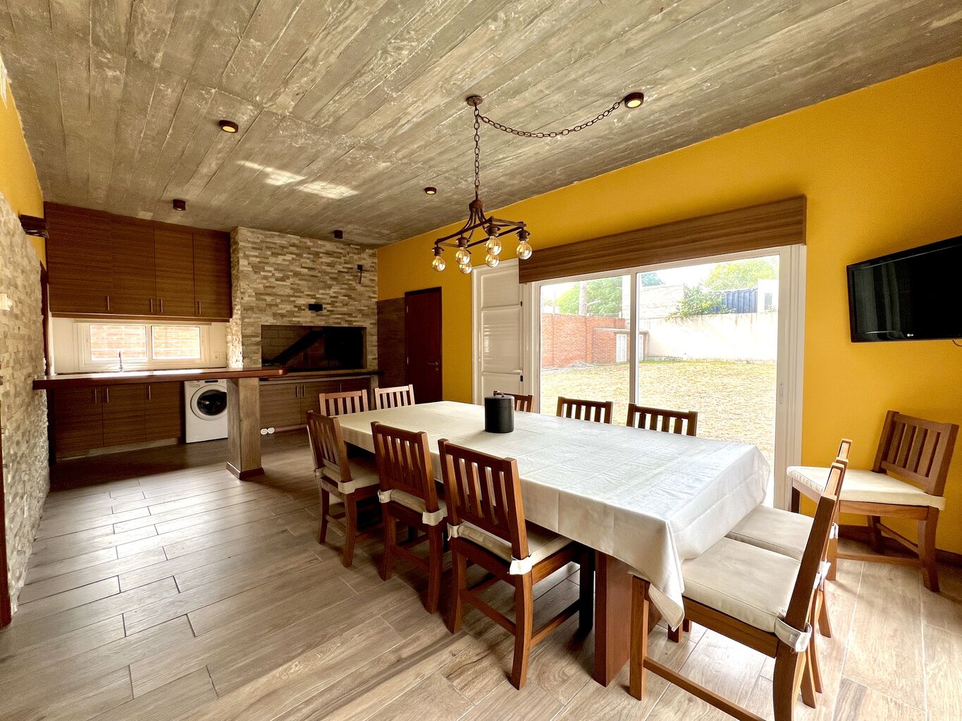 - Espacio de barbacoa cerrado que se conecta desde la cocina y el comedor, con pileta independiente y lugar para colocar lavarropas.